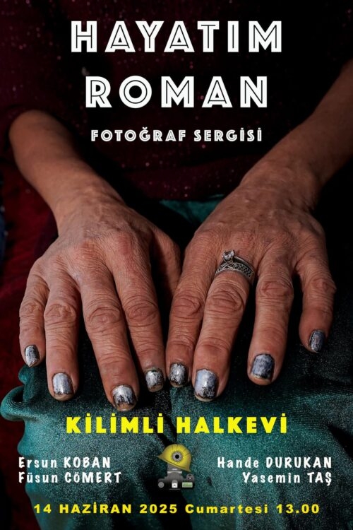 Derneğimizin kadın üyeleri Ersun KOBAN, Füsun CÖMERT, Hande DURUKAN ve Yasemin TAŞ’ın objektifinden çıkan ve kadın Roman vatandaşlarımızın hayatlarını yansıtan “HAYATIM ROMAN” Fotoğraf Sergisi, 14 Haziran 2025 Cumartesi gününden itibaren Kilimli Halkevinde sanatseverlerin ziyaretine açılacaktır. Tüm üyelerimizi açılışa bekleriz. Açılış 14 Haziran 2025 Cumartesi Saat 13.00’de yapılacaktır.