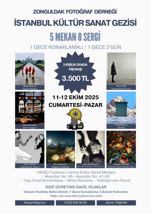 Sizleri, Zonguldak Fotoğraf Derneği olarak düzenlediğimiz İstanbul Kültür Sanat Gezisi‘ne davet ediyoruz! Bu özel geziyle hem fotoğraf sanatına doyacak hem de İstanbul’un kültürel zenginliklerini keşfedeceğiz.