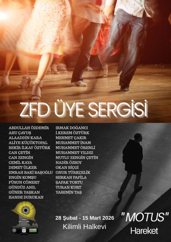 ZFD üyelerinin “MOTUS” Hareket temalı fotoğraflarından oluşan karma fotoğraf sergisi 28 Şubat – 15 Mart 2026 tarihleri arasında Kilimli Halkevinde sergileniyor.